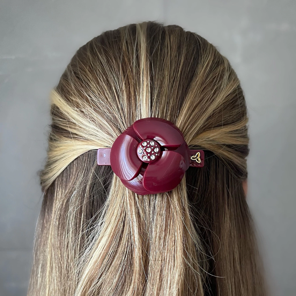 Apresentamos a Fivela Camélia, uma verdadeira obra-prima para adornar seus cabelos.